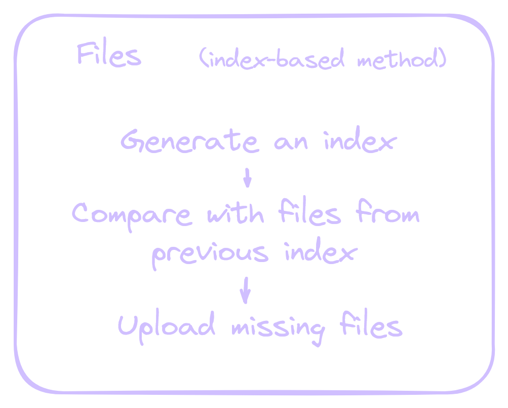 - Comparaison avec l'index précédent : Lorsqu'une nouvelle sauvegarde est effectuée, cet index est comparé à l'index précédemment généré. Cela permet d'identifier uniquement les changements effectués (nouveaux fichiers, fichiers modifiés).